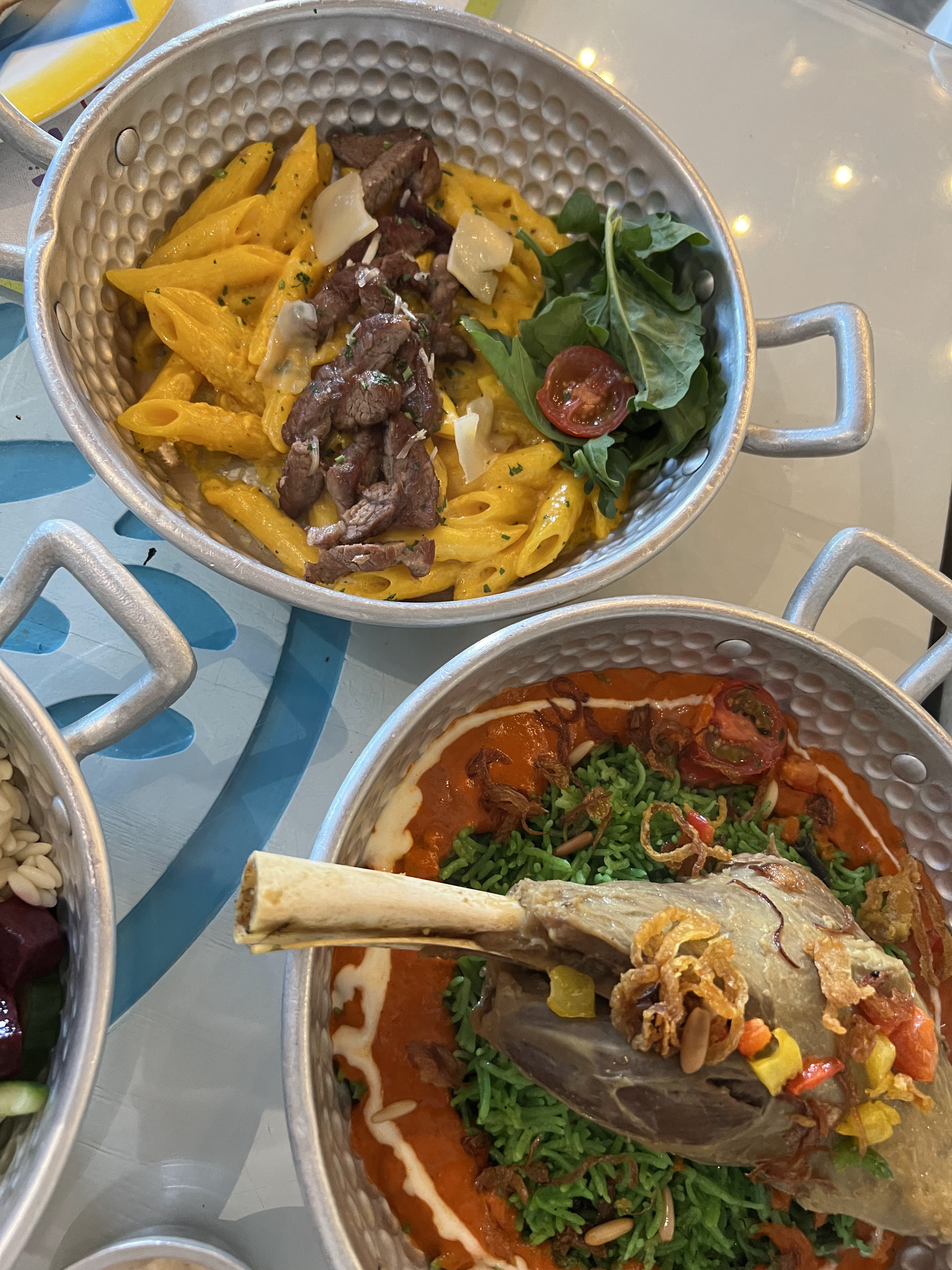 Meal of choice: hommous garangaou, mjaknama salad, lamb teka, mufarfat majguzi, and pasta zaafarana