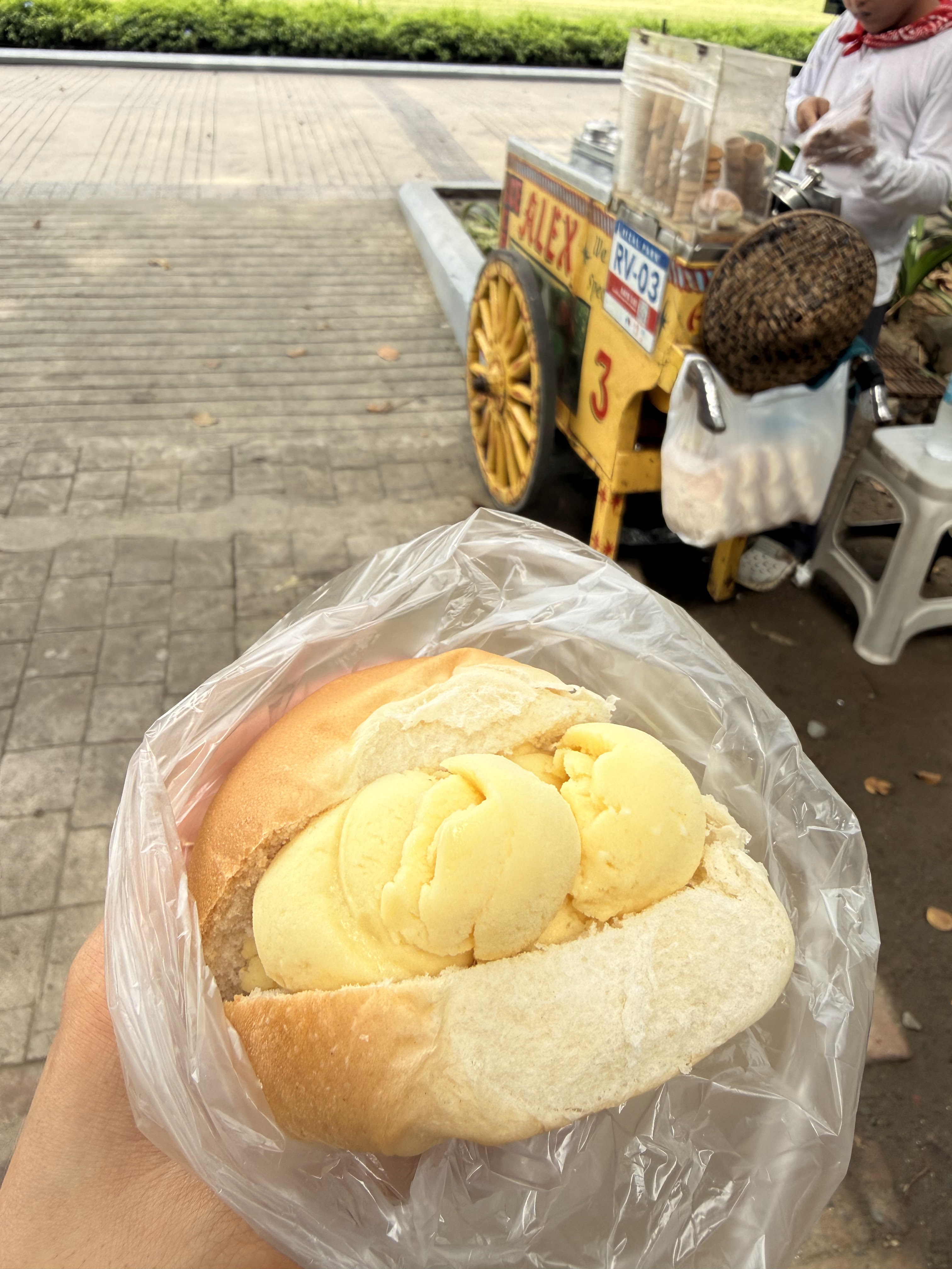 One of my FAVORITES! Always has me reminiscing my days as a college student at the University of Santo Tomas enjoying ice cream sandwiches behind the main building. Possible culture shock– but in the Philippines our ice cream sandwiches are in literal bread. And yes, it is fire.